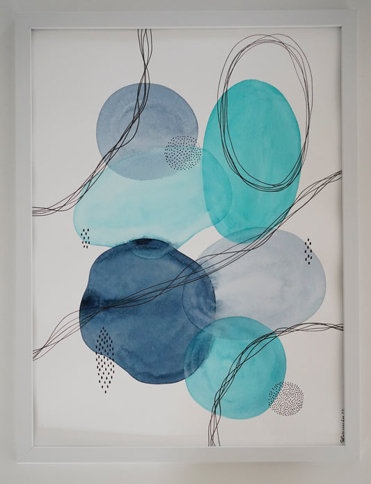 Oeuvre imprimée - Aquarelle Abstrait teintes de bleu
