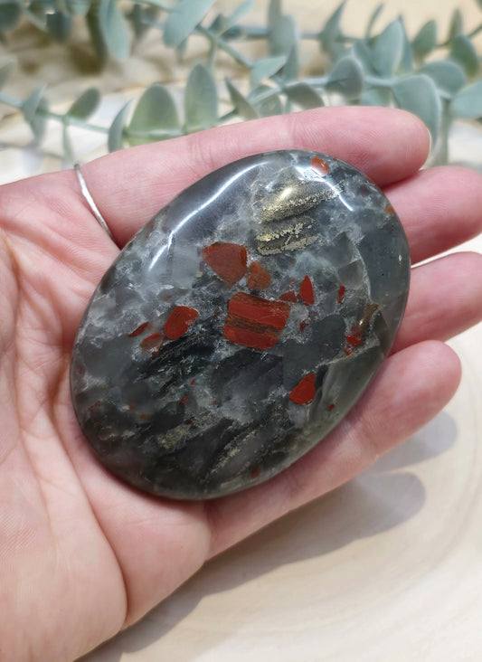 Pierre de paume en Quartz feu (hématoïde rouge)