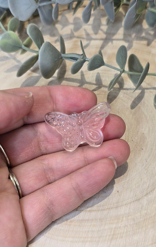 Papillon et fleurs en Quartz rose