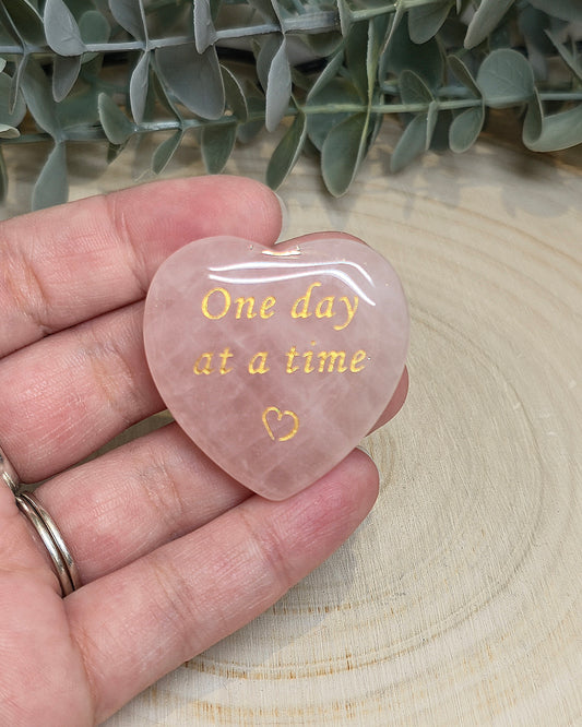 Pierre de paume en coeur Quartz rose - One Day at a Time