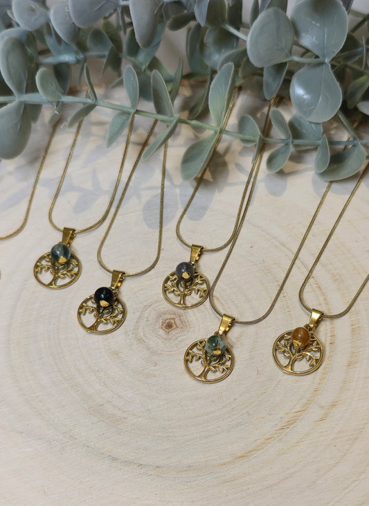 Collier Arbre de vie et pierre gold