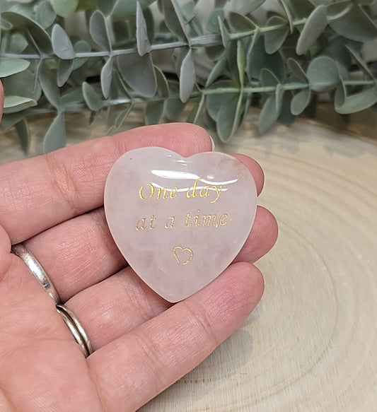 Pierre de paume en coeur Quartz rose - One Day at a Time