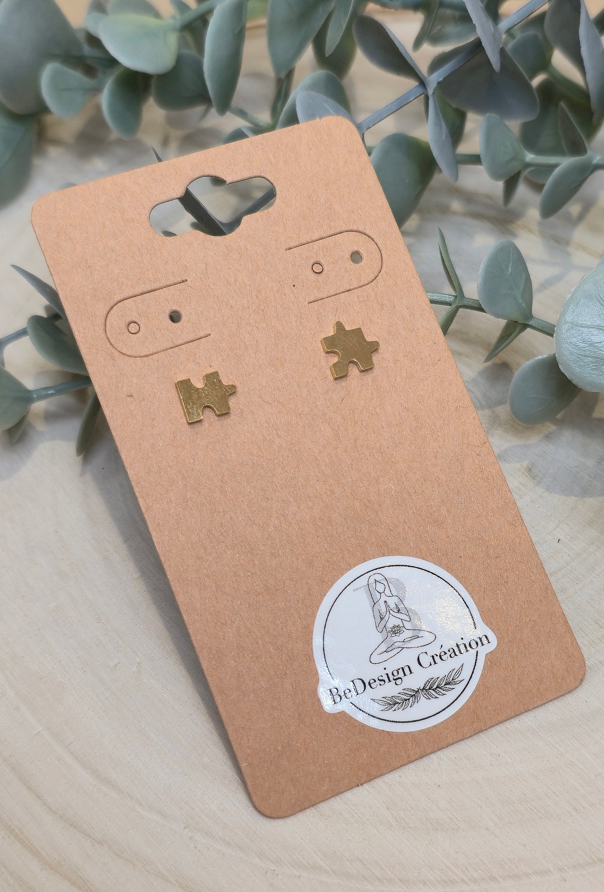 Boucles d’oreilles en acier inoxydable plaqué or 18k avec un Casse-tête.