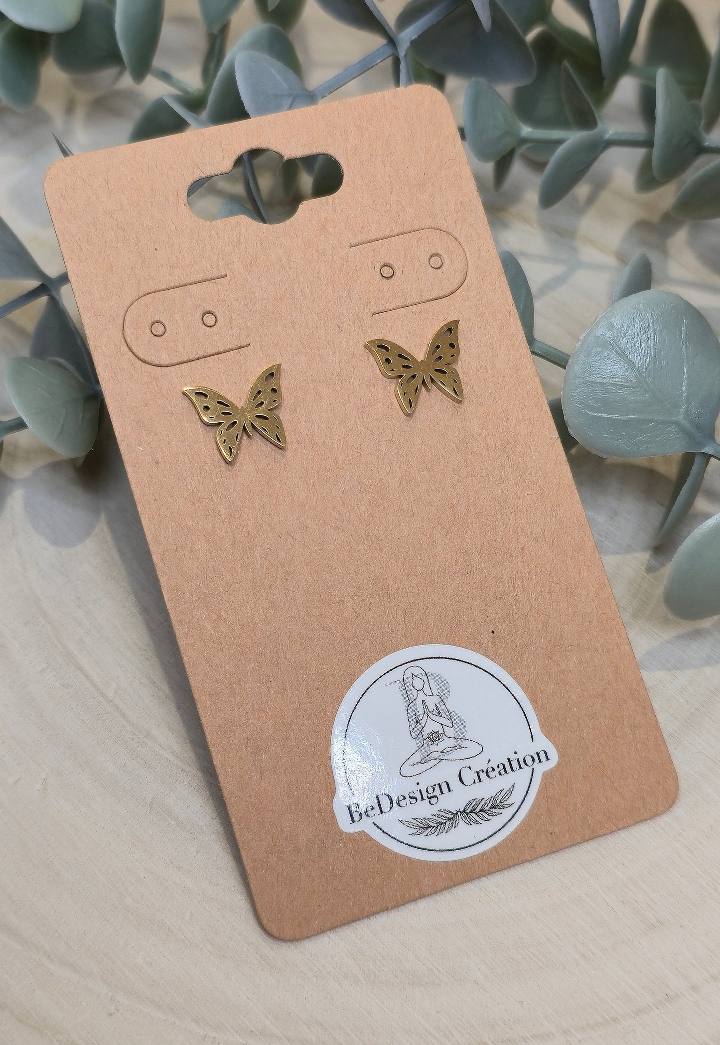 Boucles d’oreilles en acier inoxydable plaqué or 18k avec un Papillon.