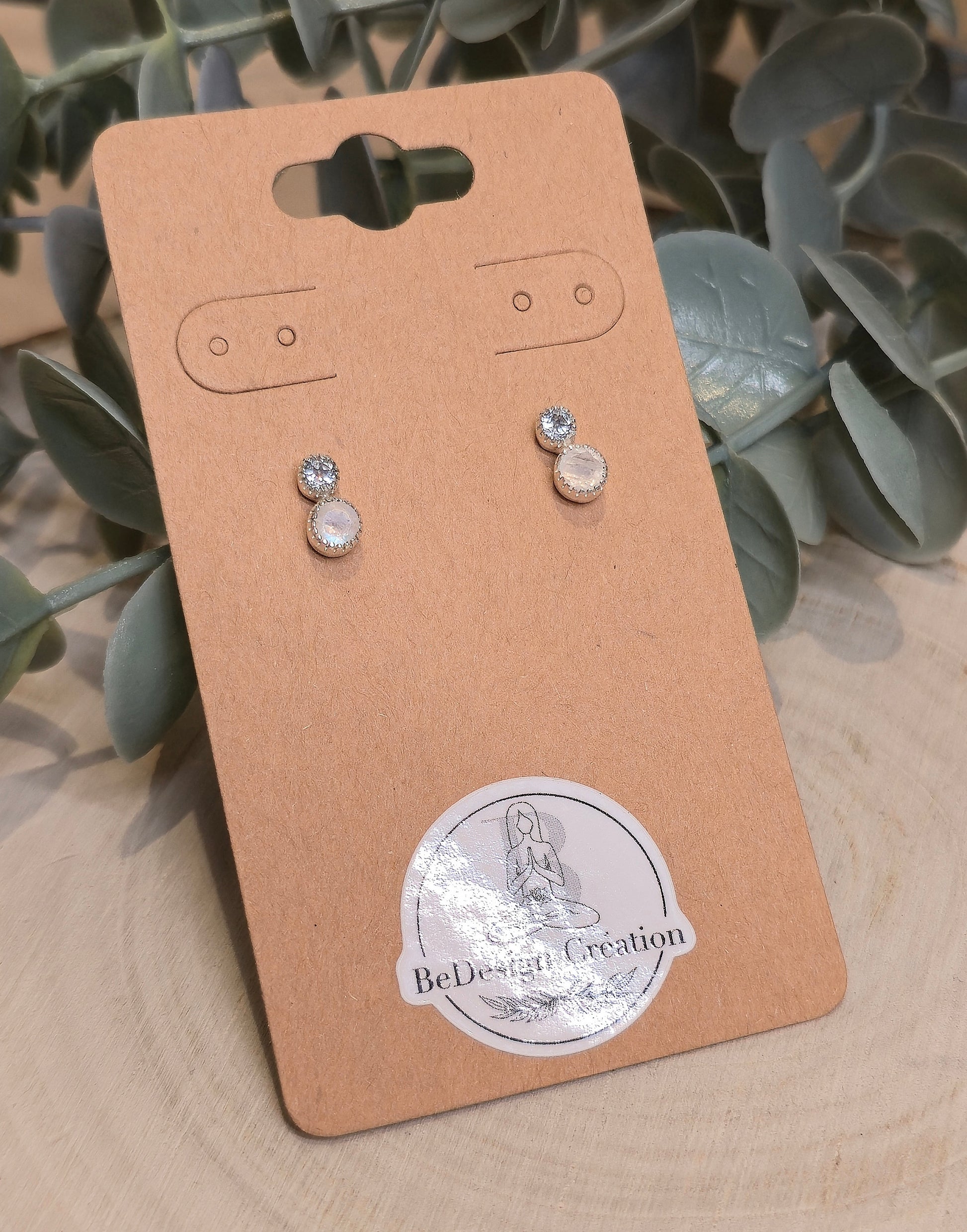 Boucles d'oreilles Pierre de lune et Topaze bleue