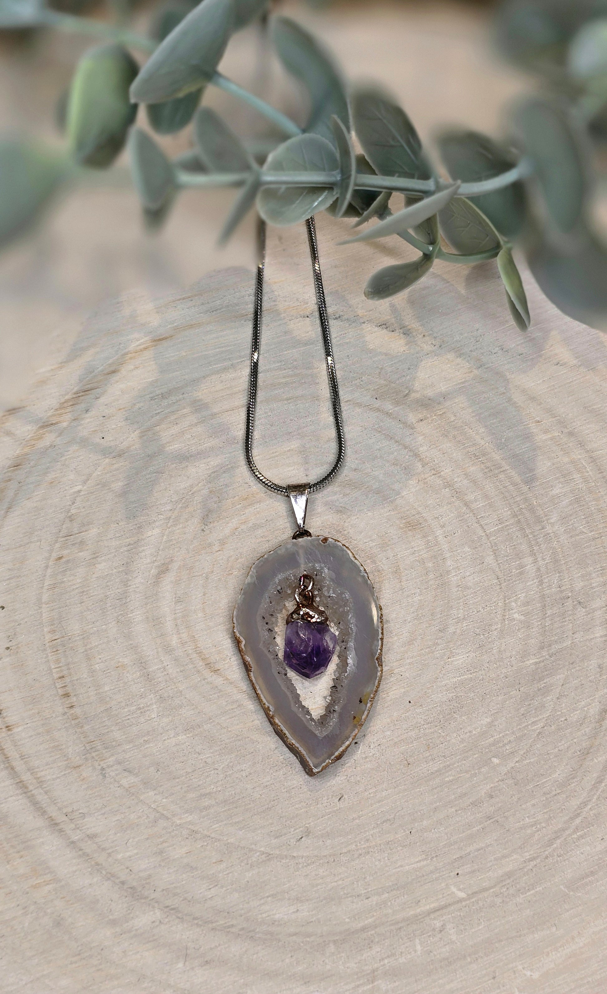 Pendentif en Agate et Améthyste en argent sterling.
