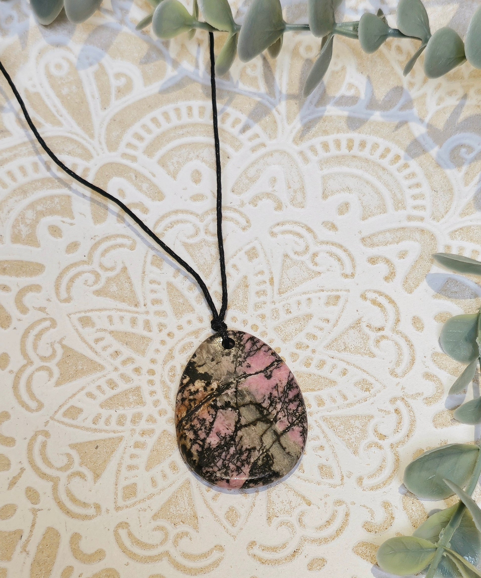 Collier goutte plate Rhodonite