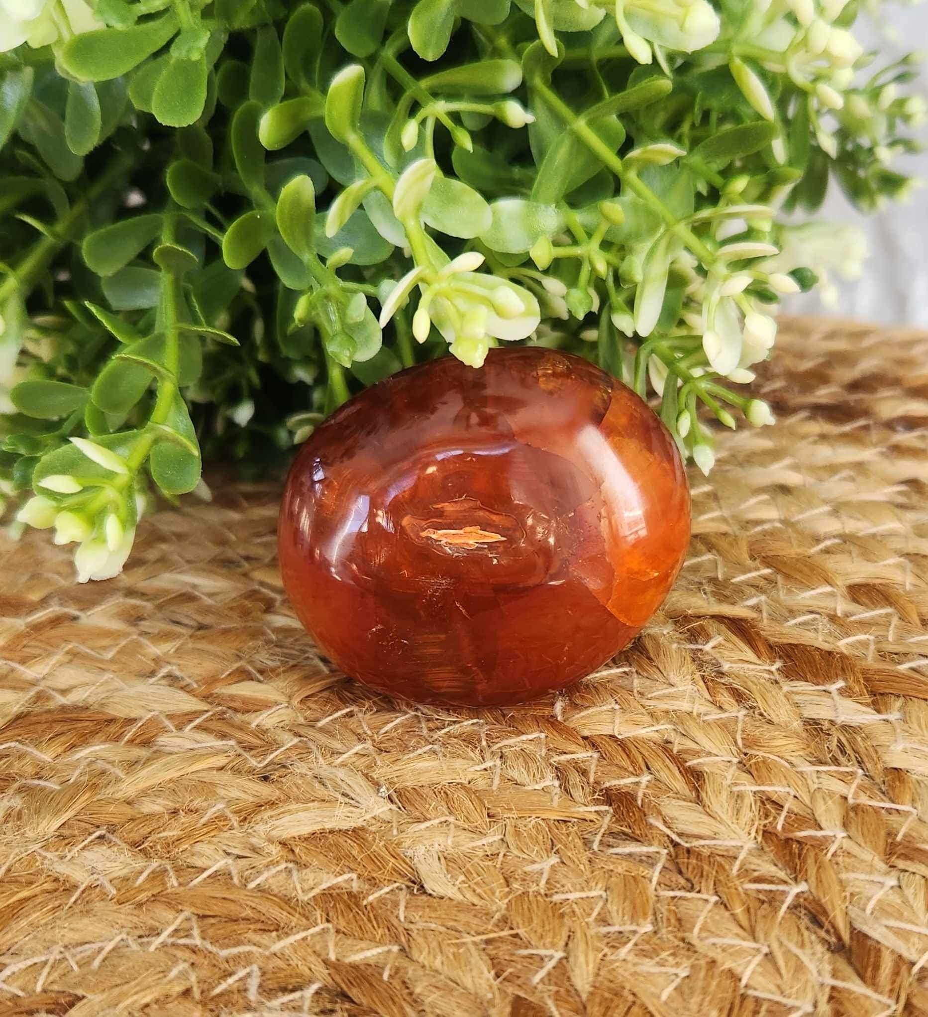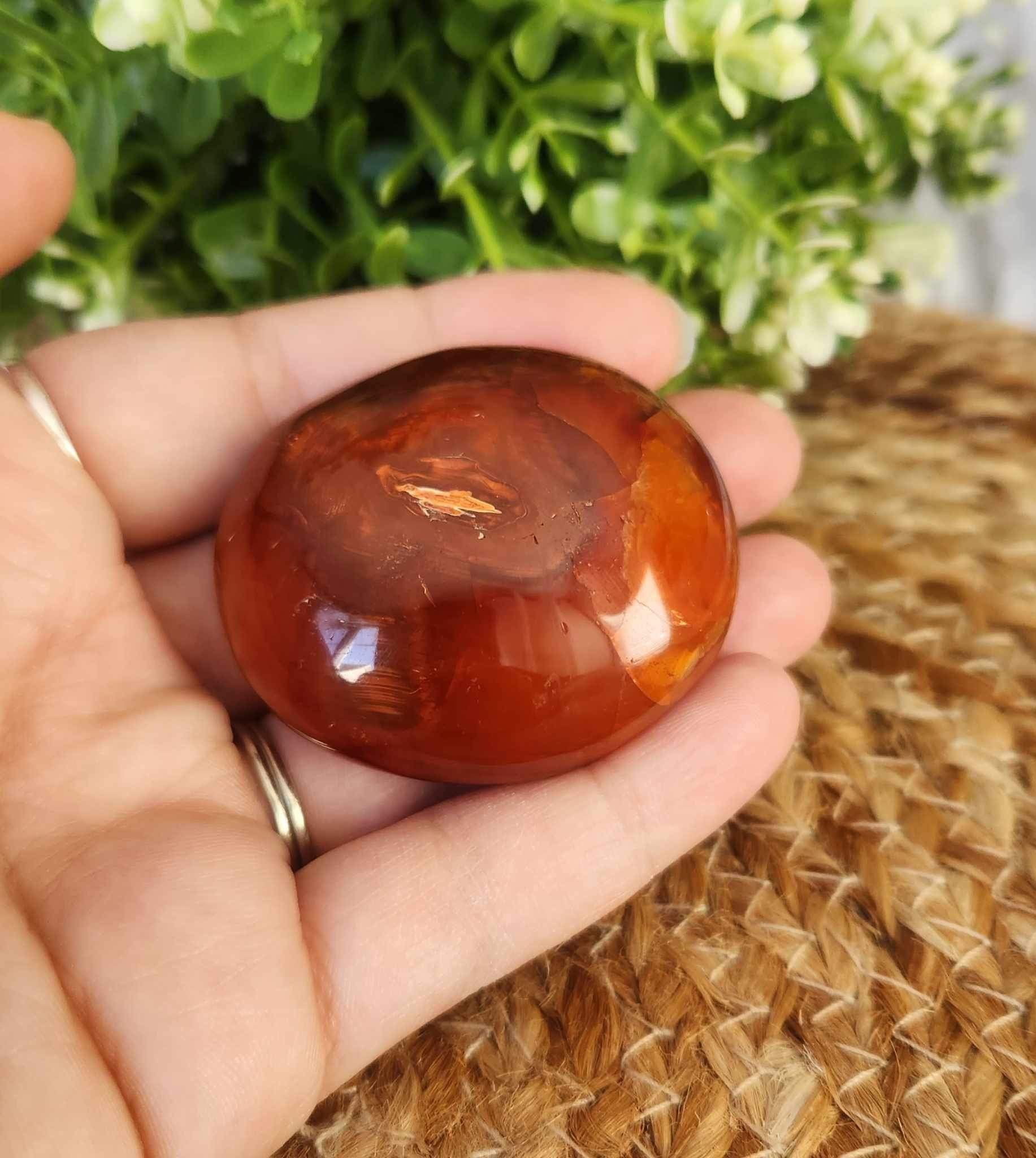 Pierre de paume en Cornaline à utiliser en méditation, en décoration, à porter sur soi ou selon votre volonté.
