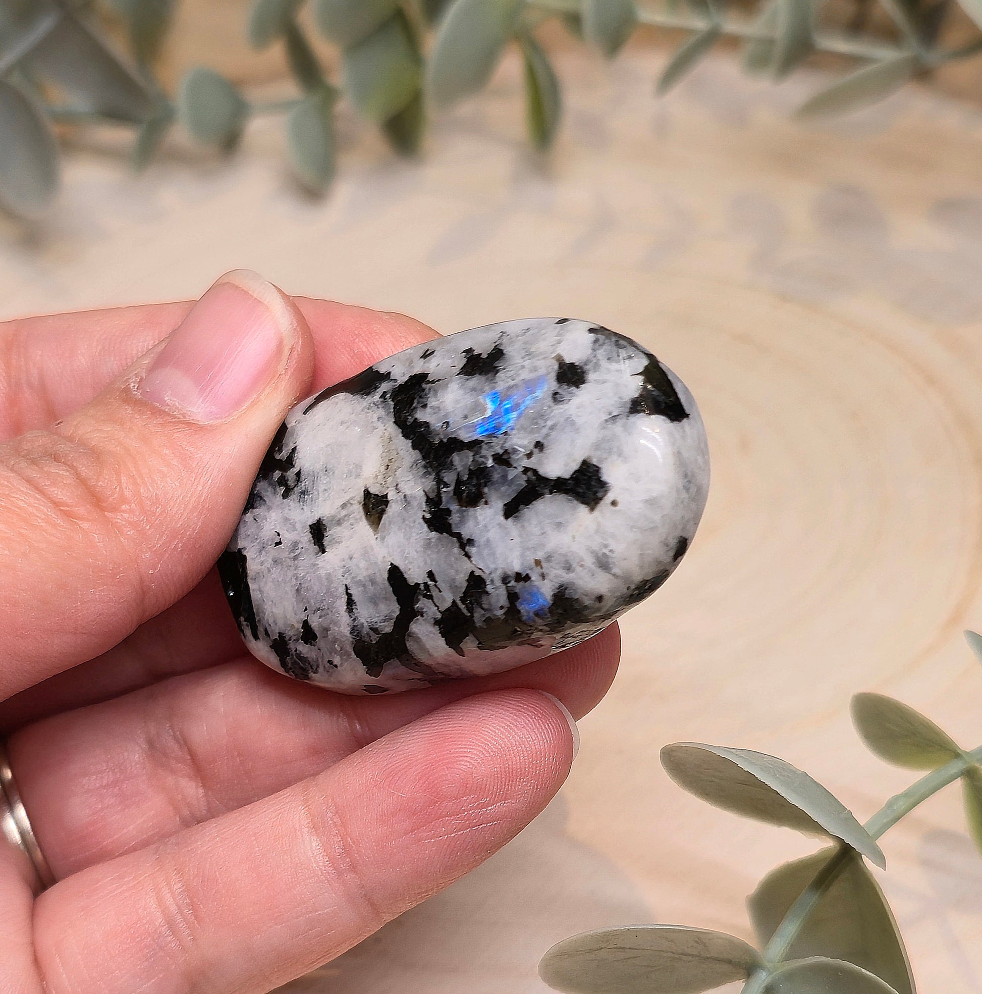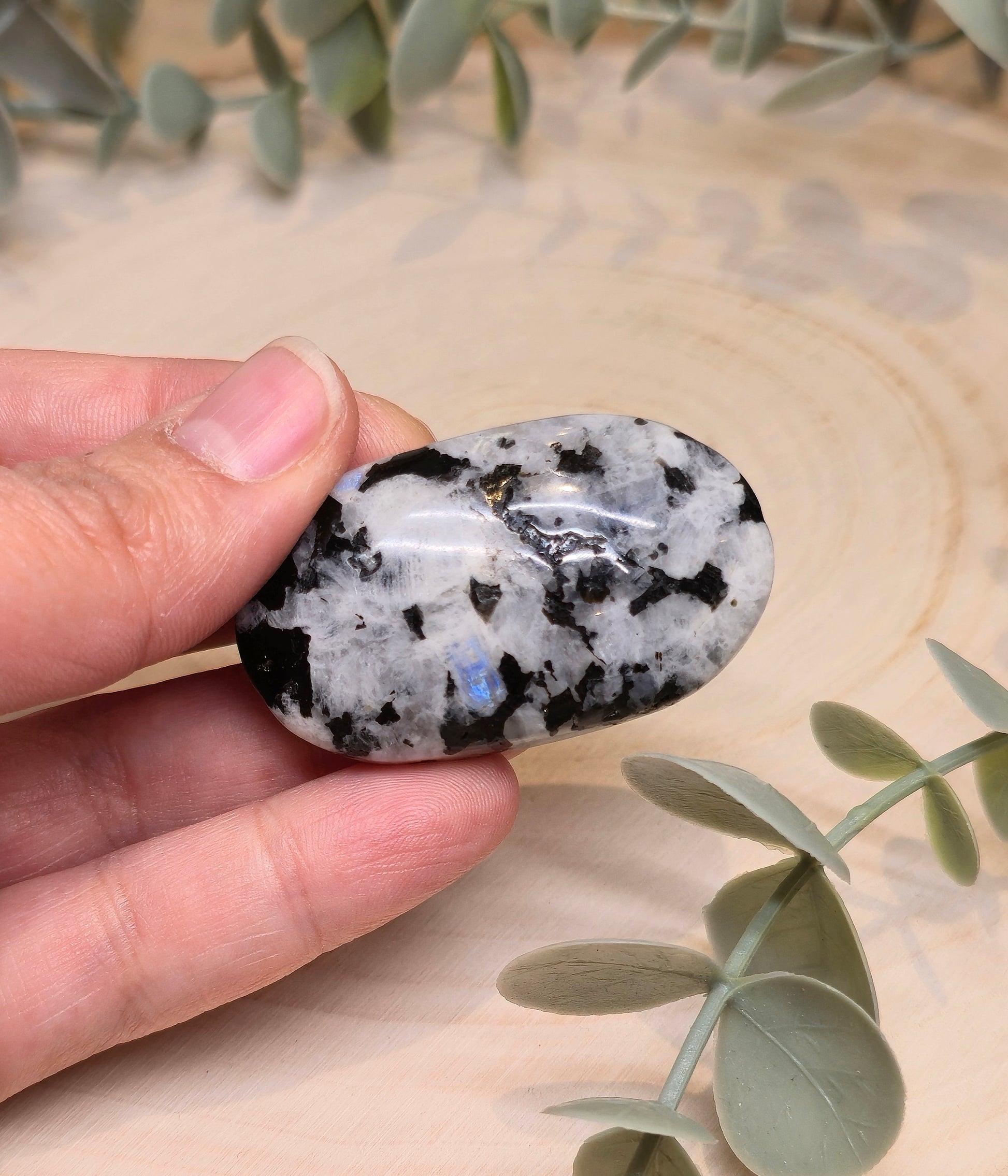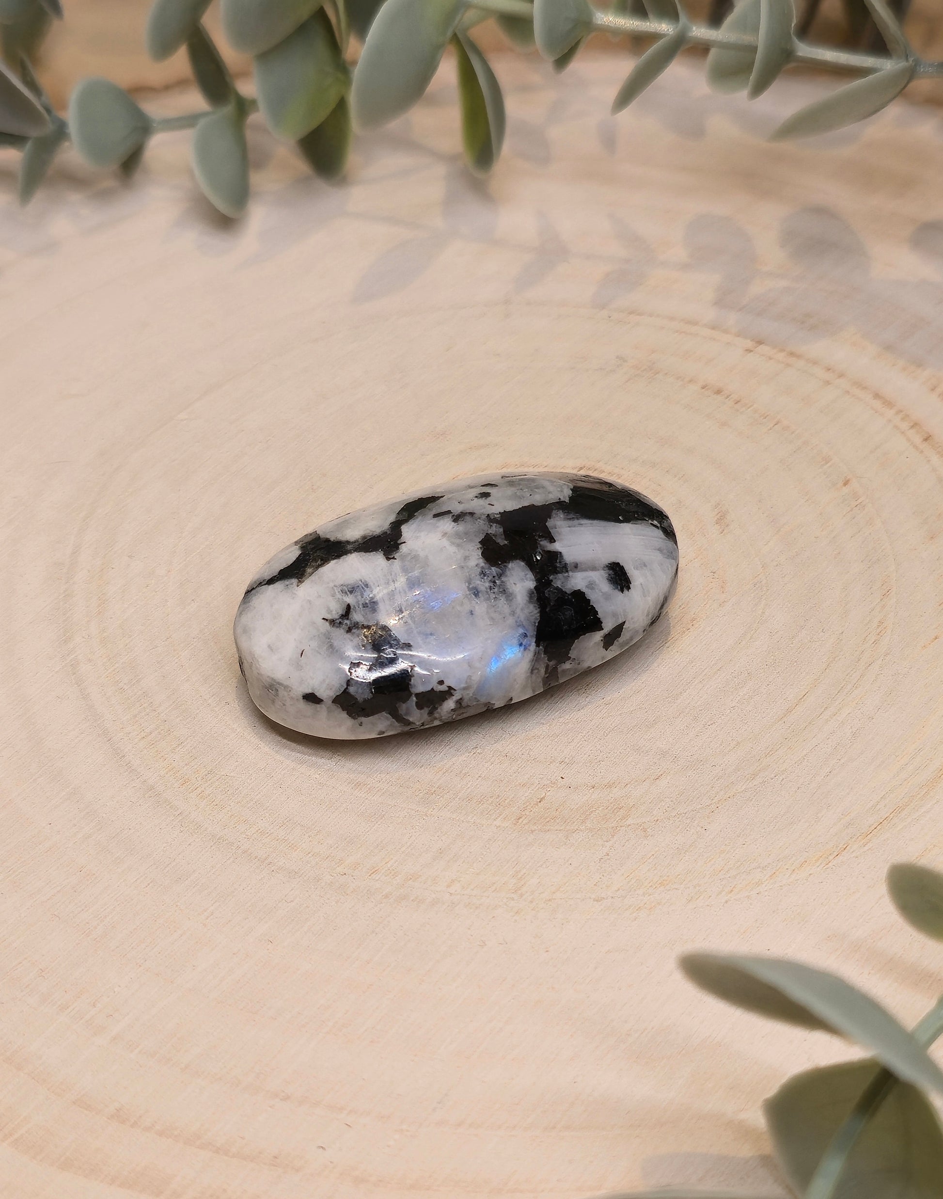 Pierre de paume en Pierre de lune à utiliser en méditation, en décoration, à porter sur soi ou selon votre volonté.