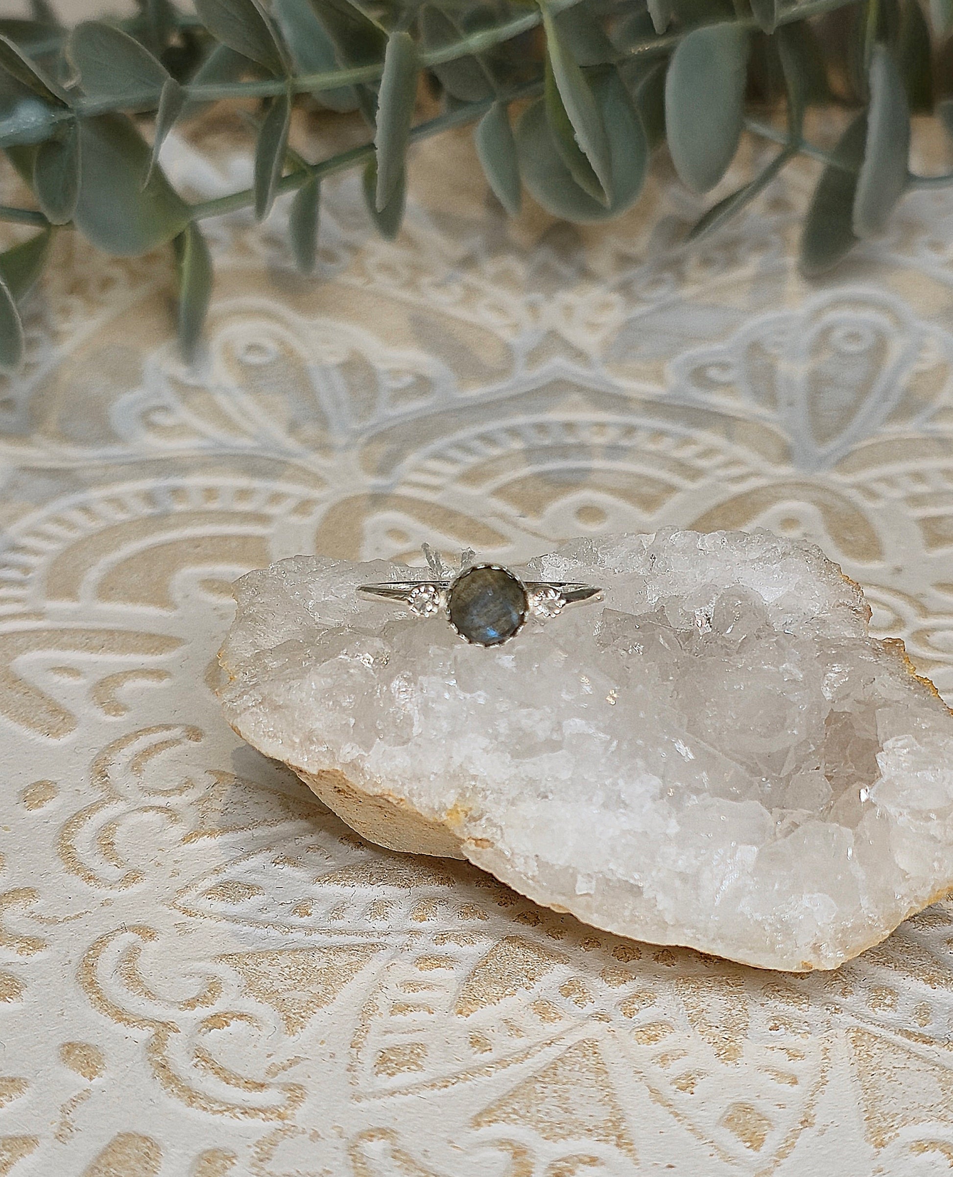 Bague en argent sterling avec Labradorite et Topaze blanche.