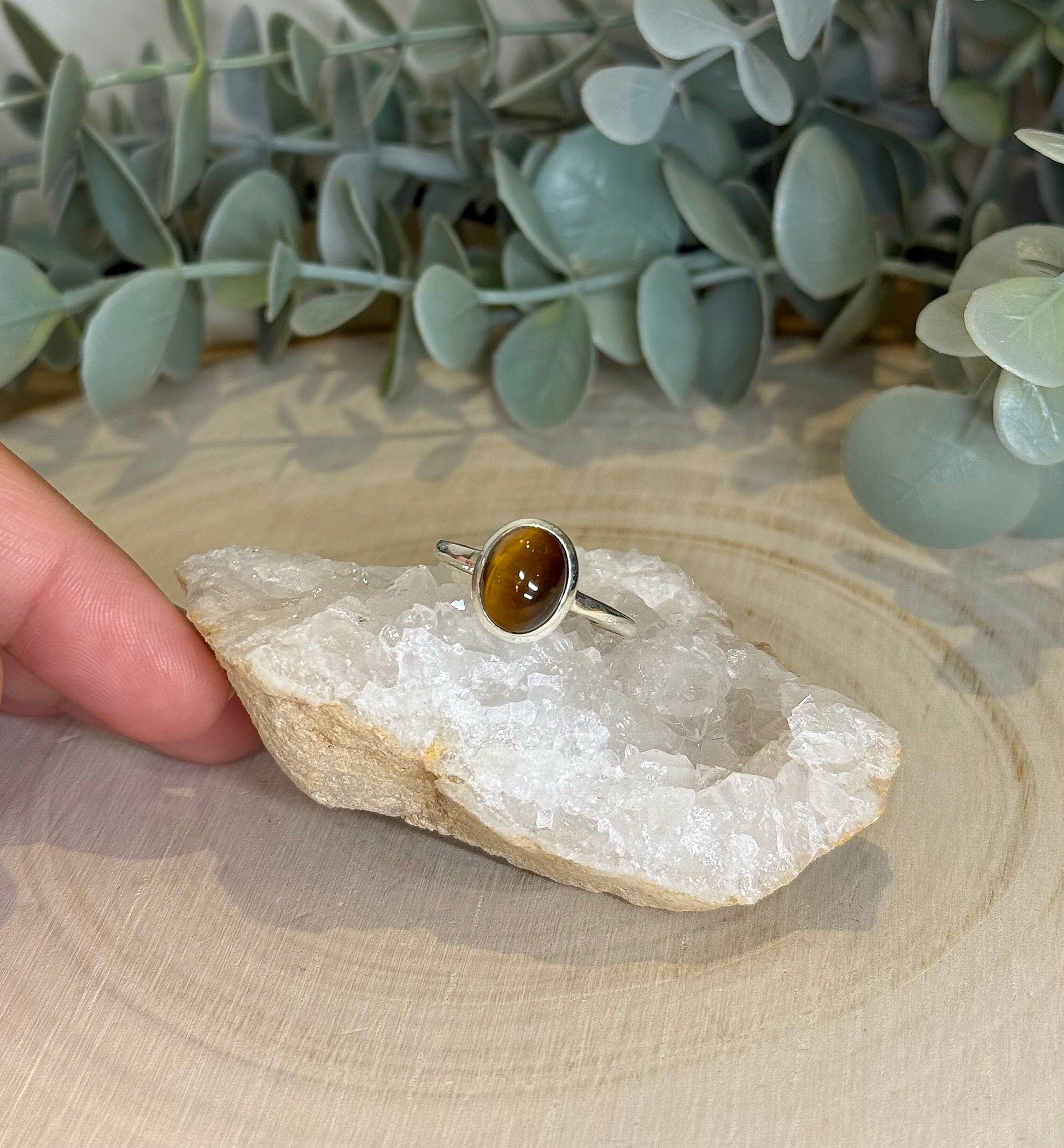 Bague en argent sterling avec un Oeil de tigre ovale.