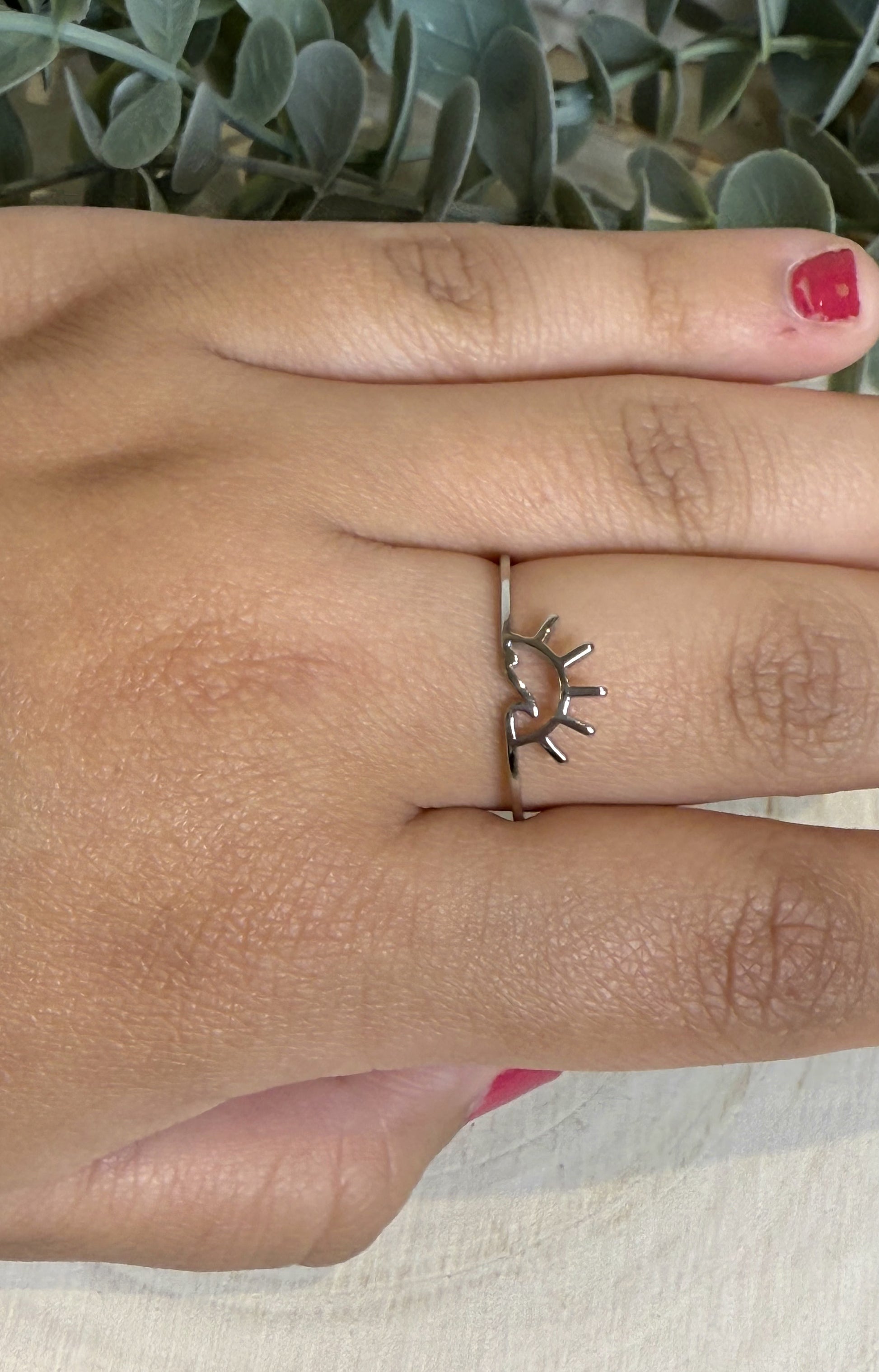 Magnifique bague ajustable avec des vagues et un levée de Soleil minimaliste en acier inoxydable.