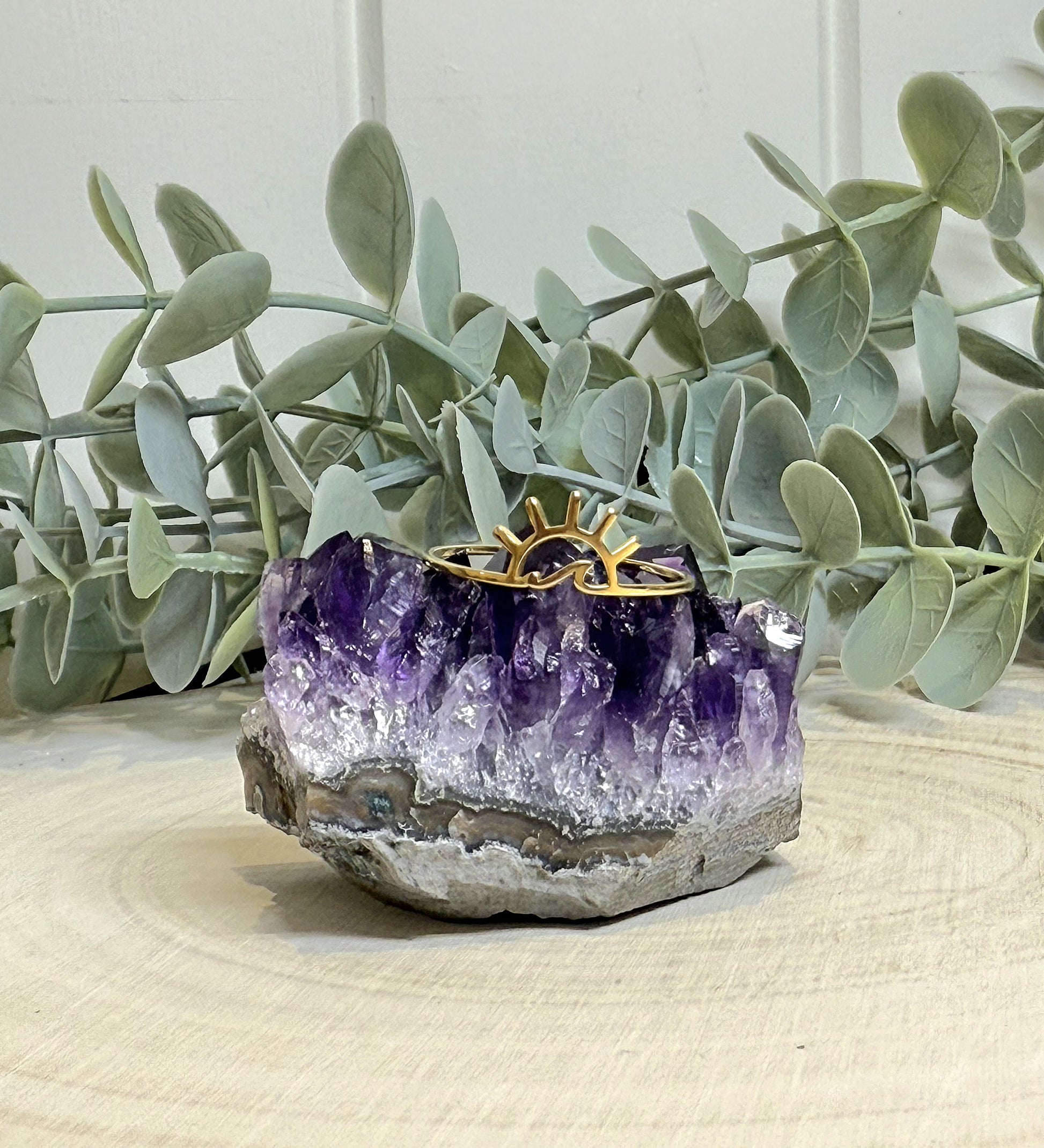 Magnifique bague ajustable avec des vagues et un levée de Soleil minimaliste en acier inoxydable plaqué or 18K.