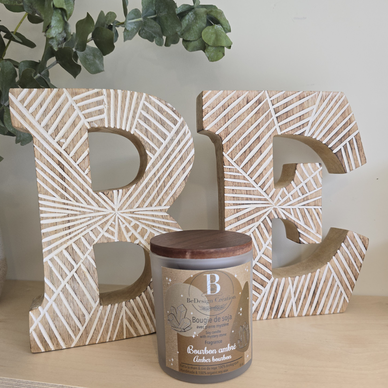 Bougie de soja avec Pierre mystère - Bourbon ambré