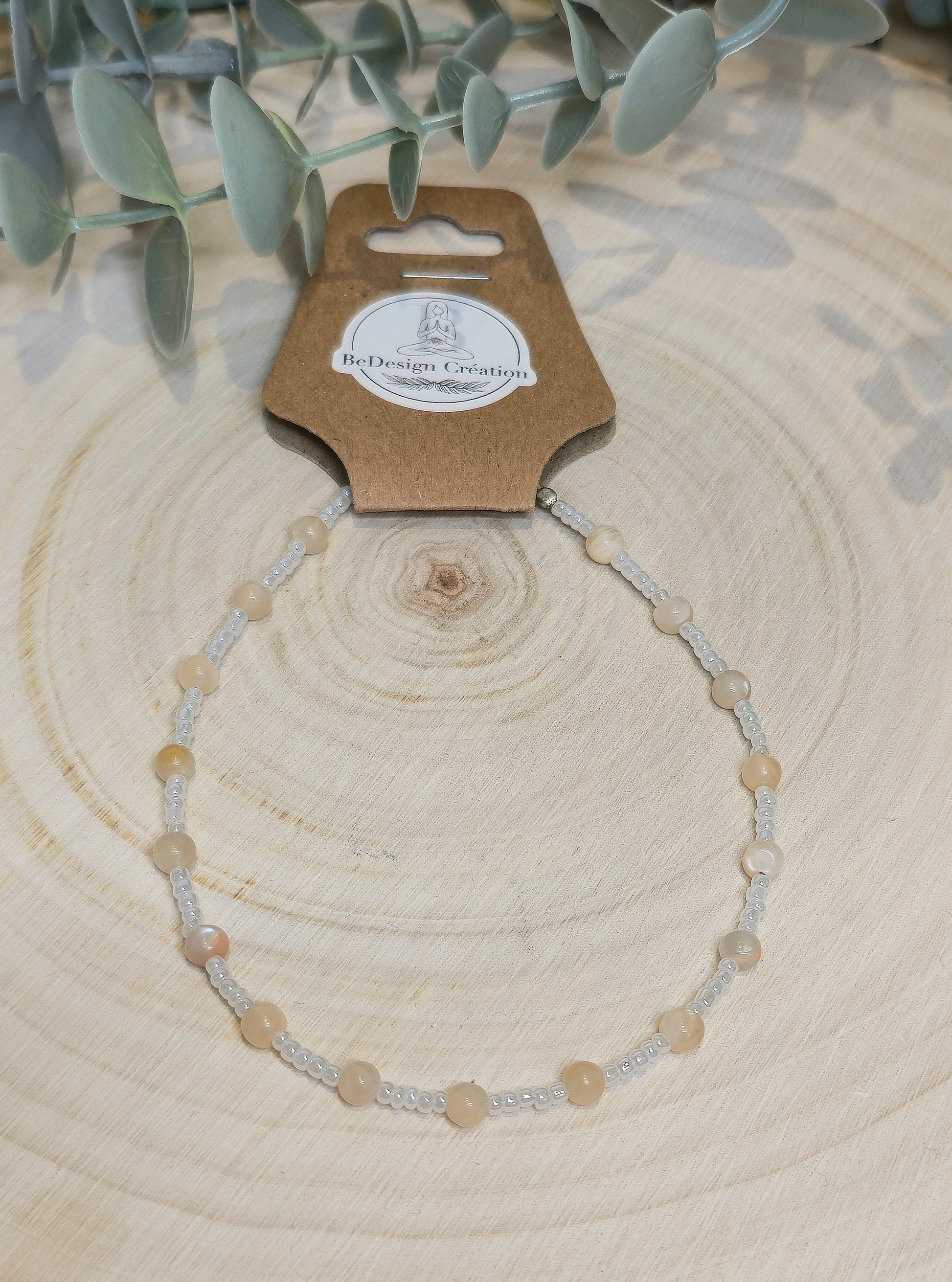 Bracelet cheville avec pierres - Pierre de lune pêche