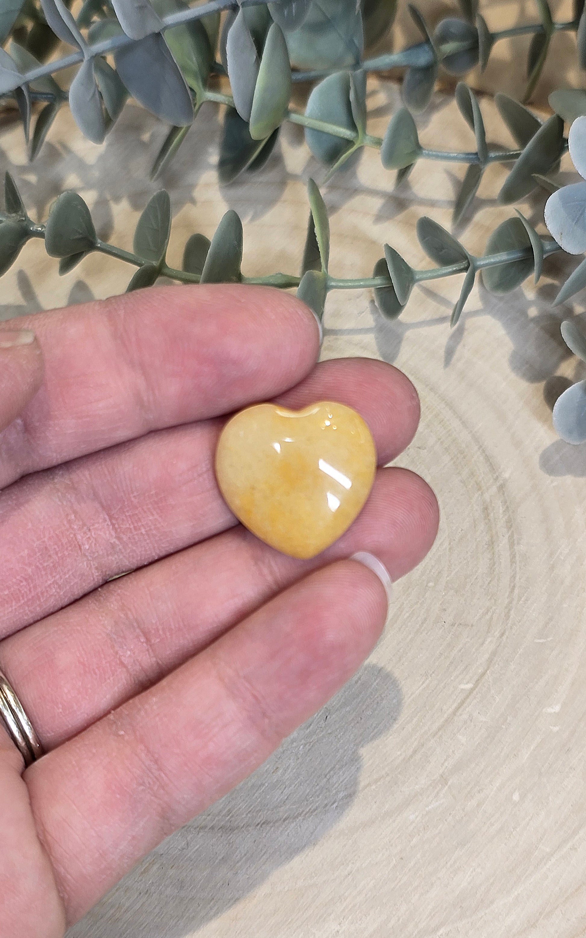 Coeur en Aventurine jaune d’environ 2cm x 2cm, à utiliser en méditation, en décoration, à porter sur soi ou selon votre volonté.