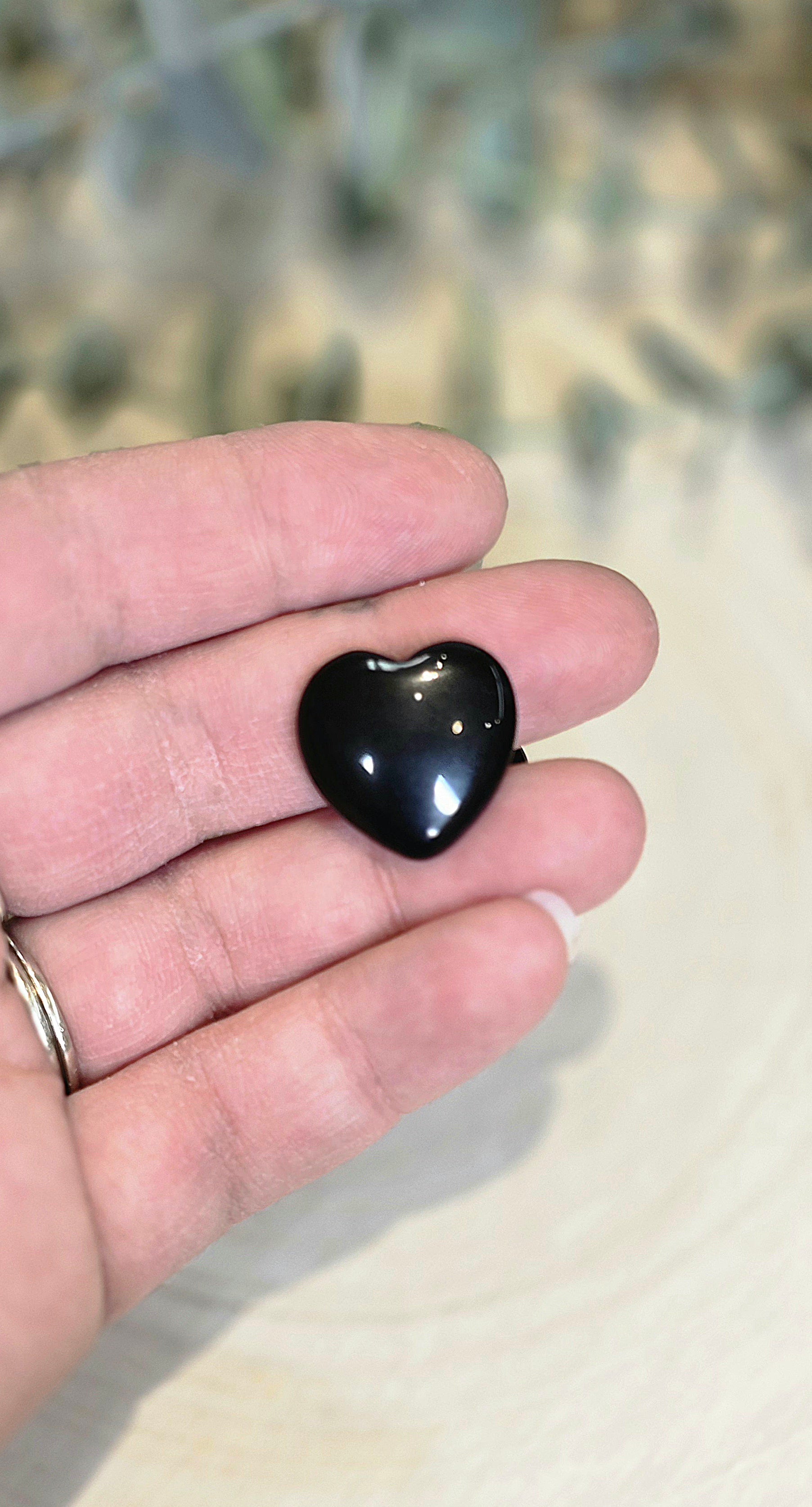 Coeur en Obsidienne d’environ 2cm x 2cm, à utiliser en méditation, en décoration, à porter sur soi ou selon votre volonté.