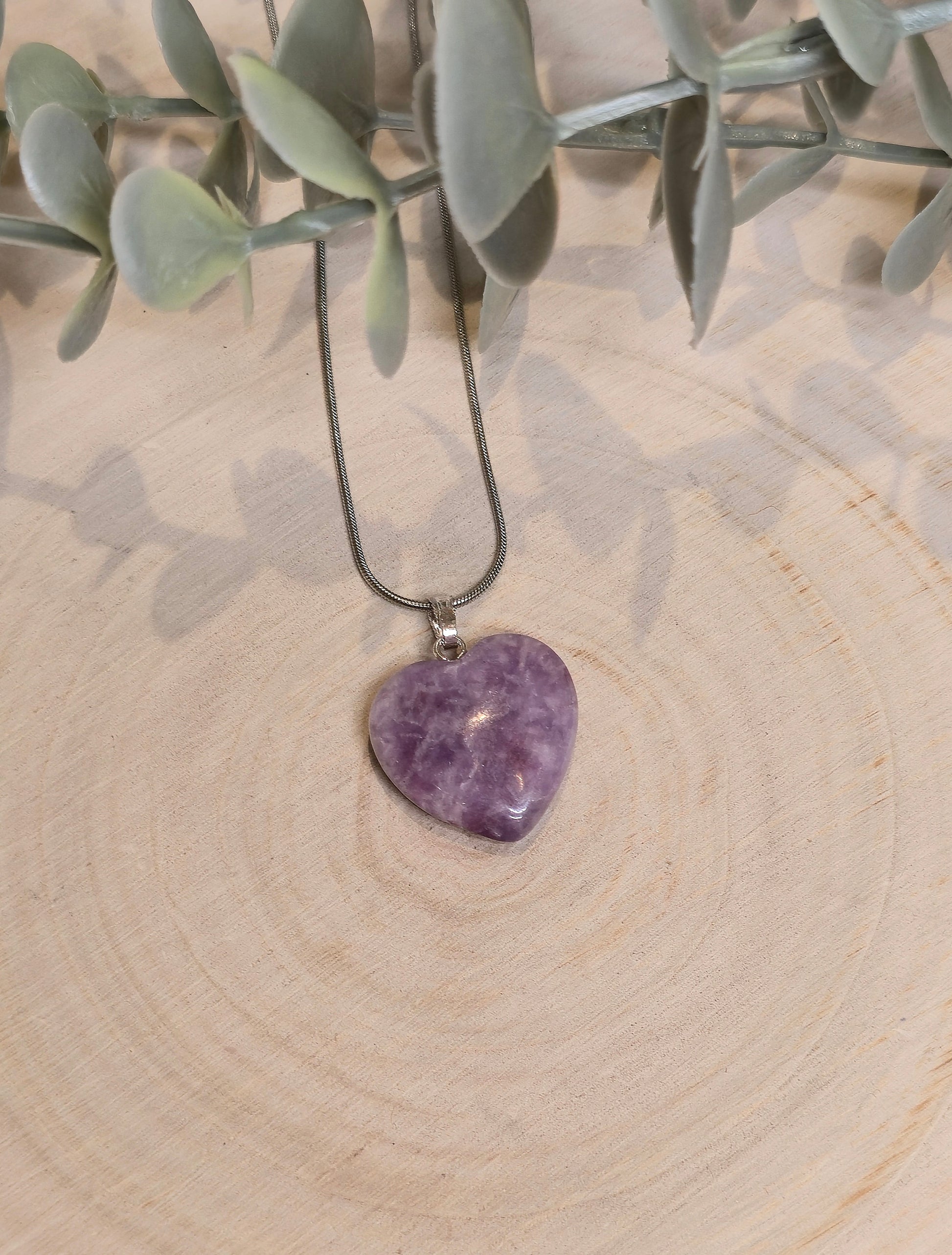 Collier en coeur en Lépidolite
