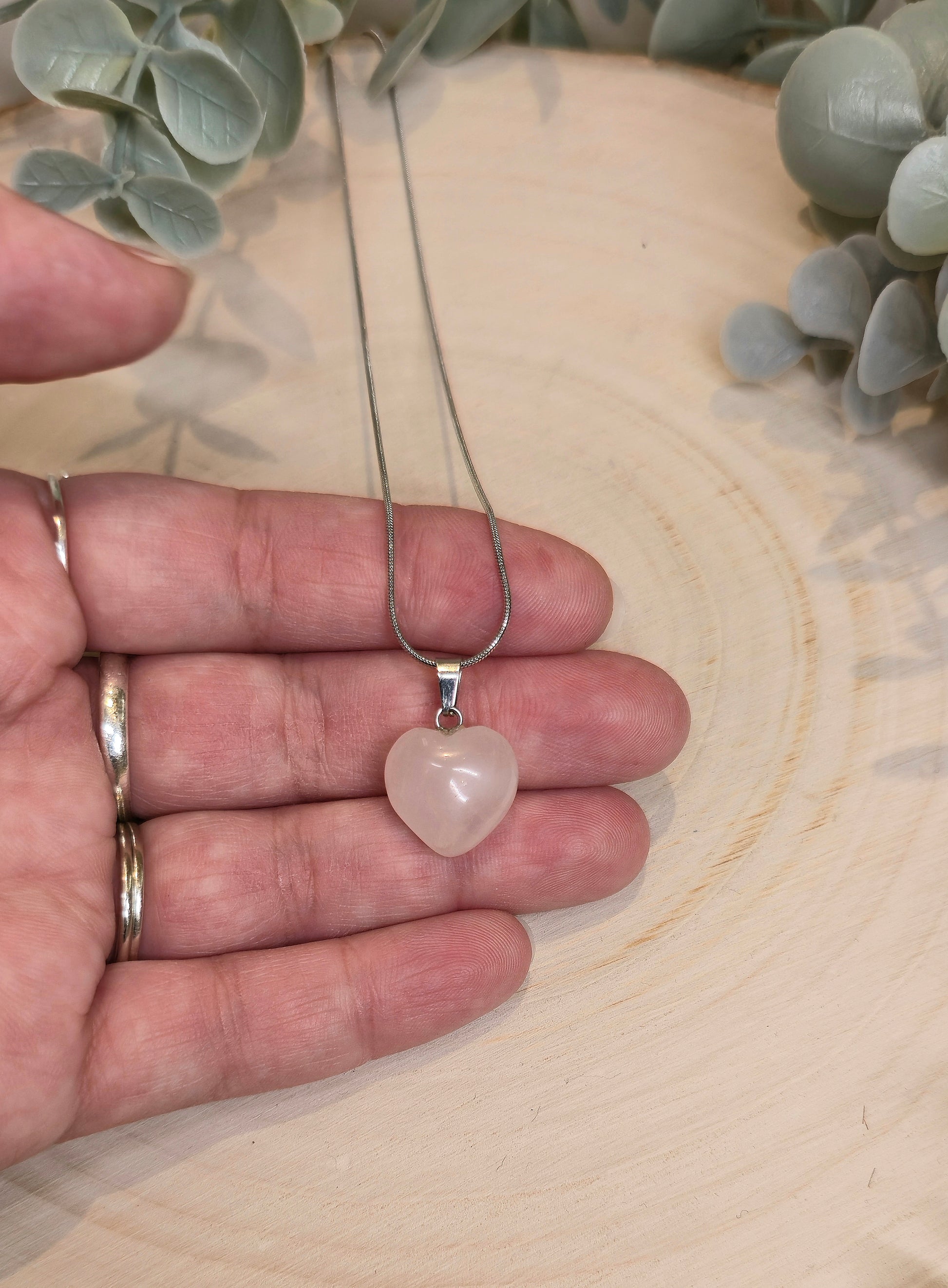 Collier en mini coeur en Quartz rose