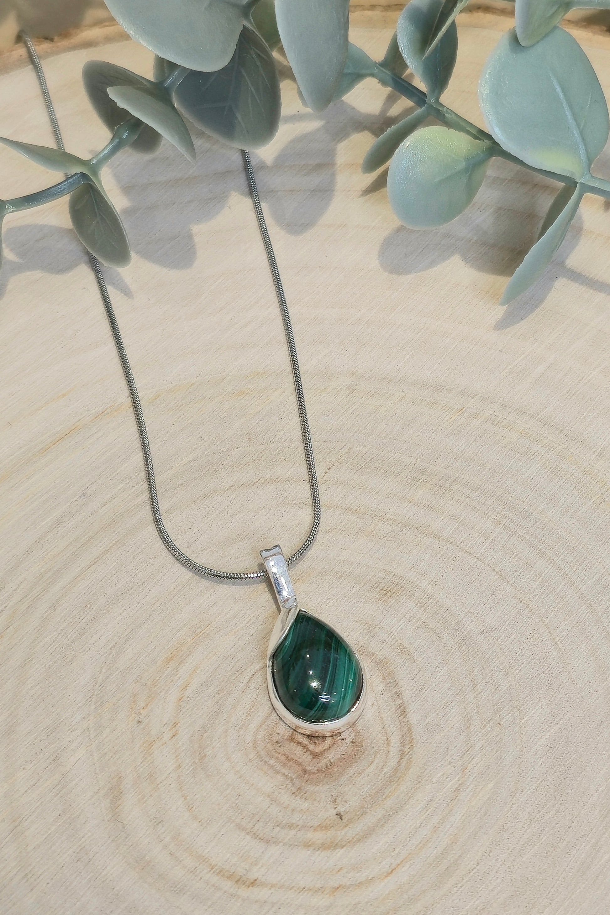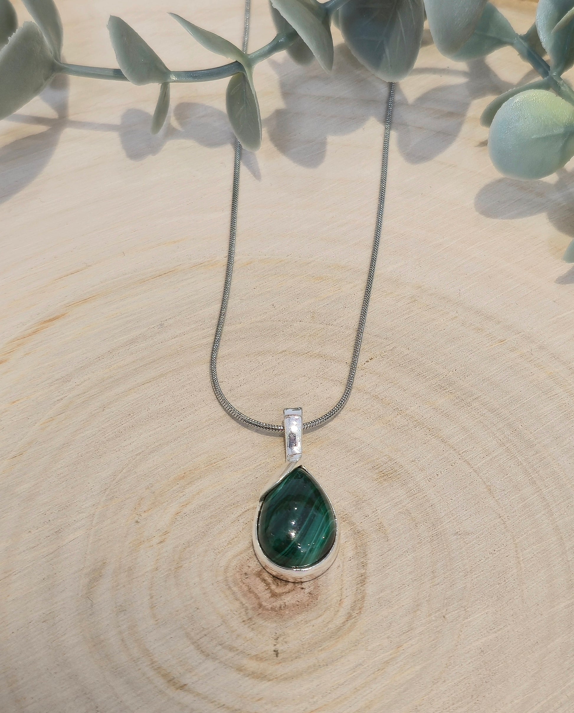 Pendentif en Malachite en argent sterling.
