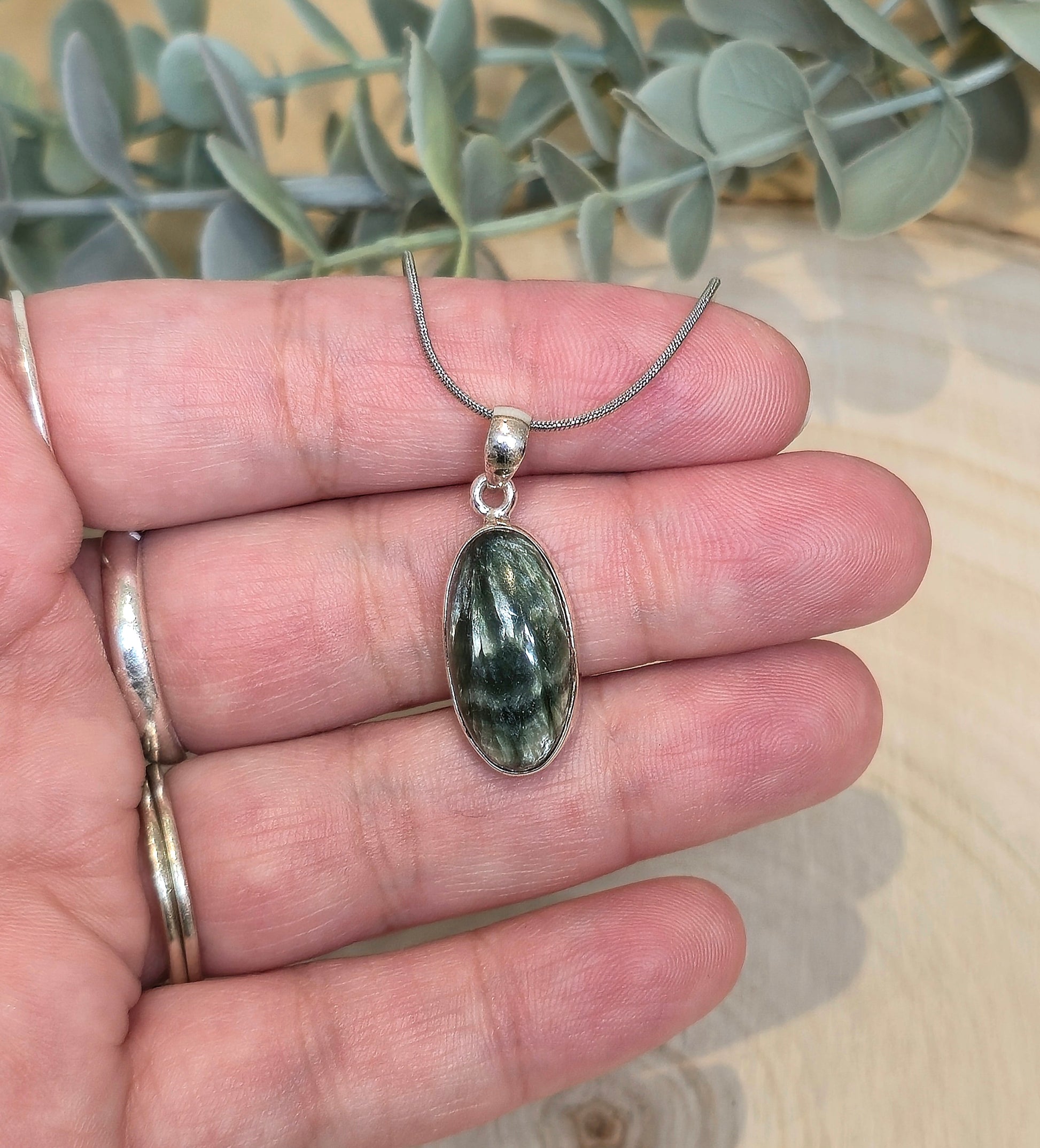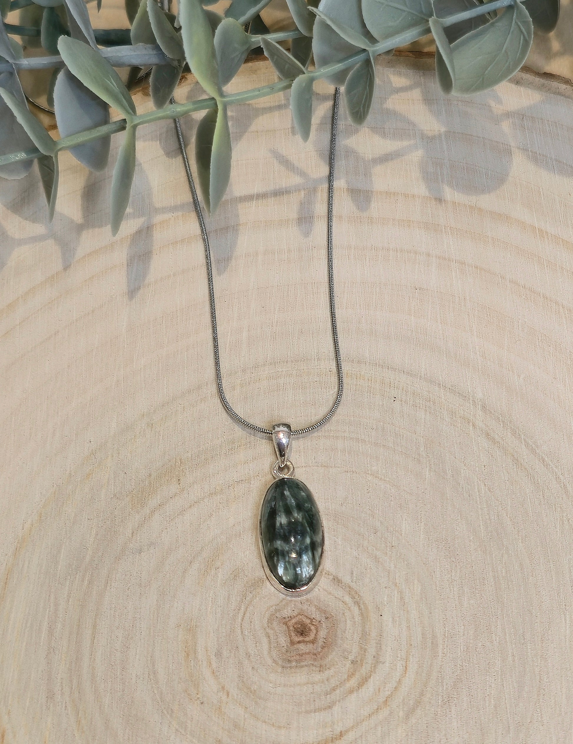 Pendentif en Séraphinite en argent sterling.