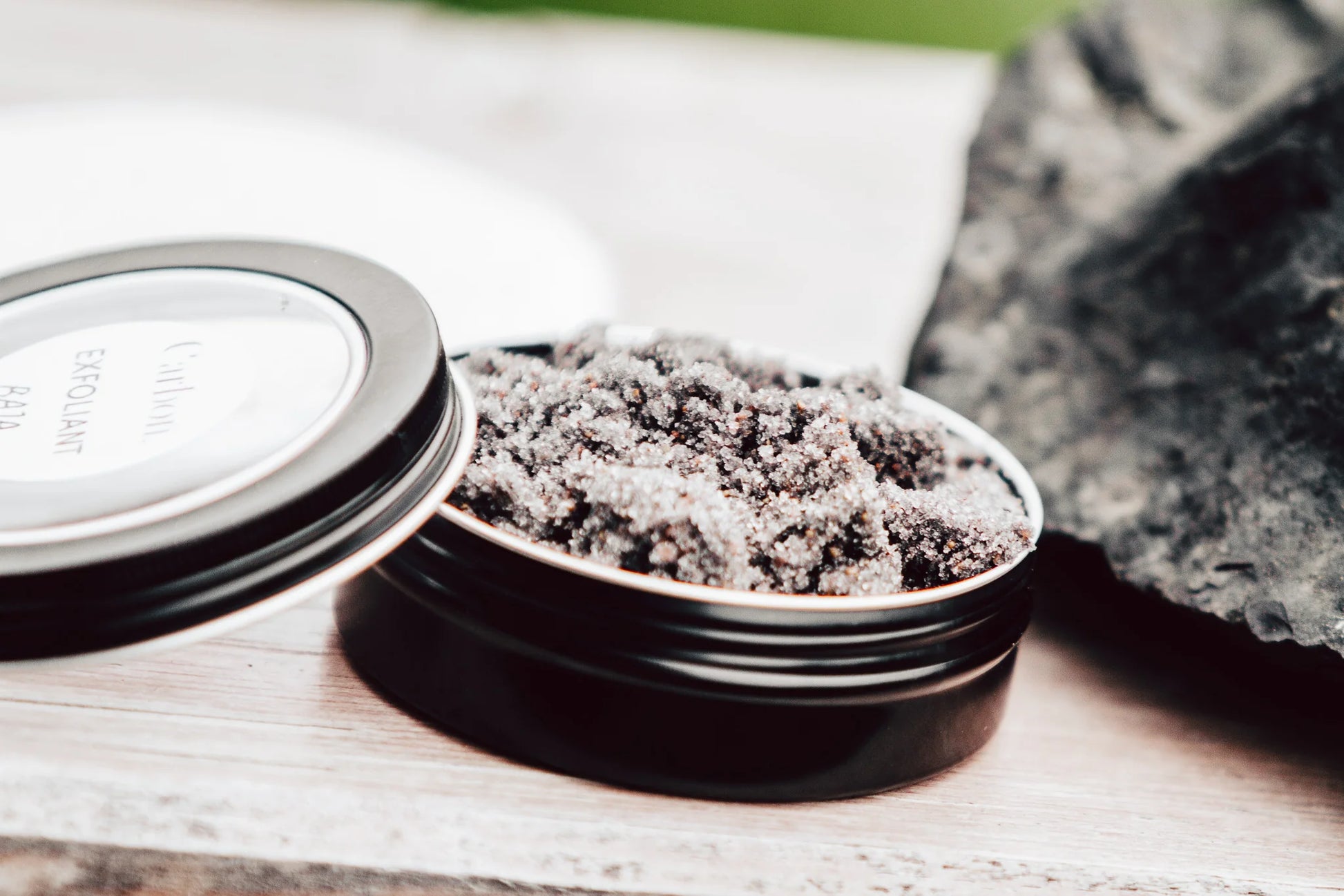 Sel de l’Himalaya, poudre de C60, sucre de canne, coquilles de noix de grenoble, huile de coconut, huile de coconut fractionnée et un mélange d'huiles essentielles.