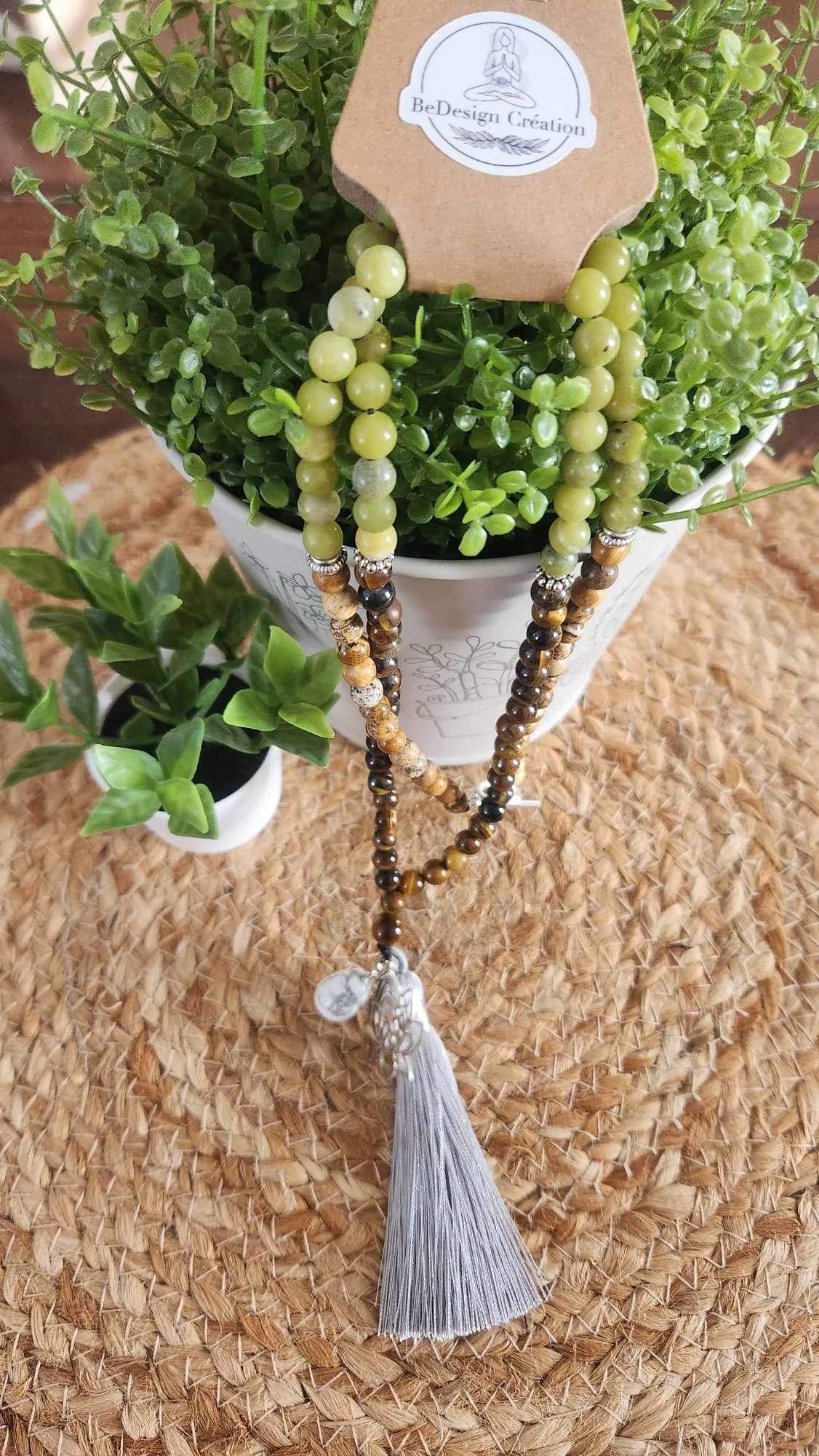 Magnifique malas fait à la main avec amour et intention. À utiliser comme collier en agencement ou avec un mantra lors d’une méditation.