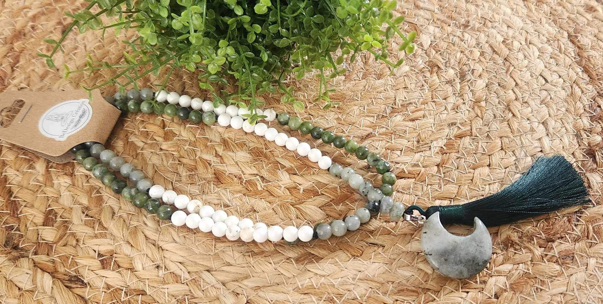 Magnifique malas fait à la main avec amour et intention. À utiliser comme collier en agencement ou avec un mantra lors d’une méditation.
