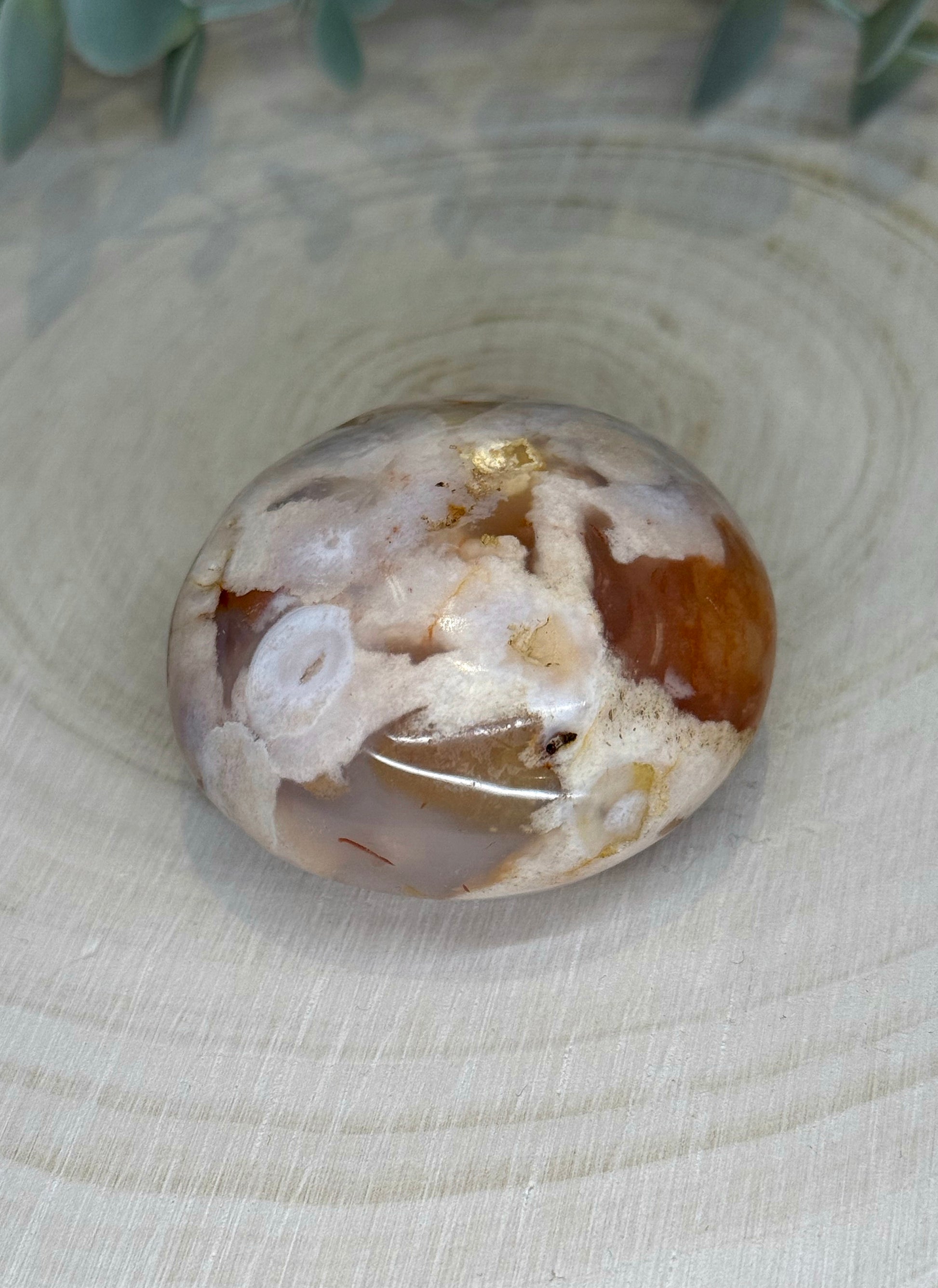 Pierre de paume en Agate fleur à utiliser en méditation, en décoration, à porter sur soi ou selon votre volonté.