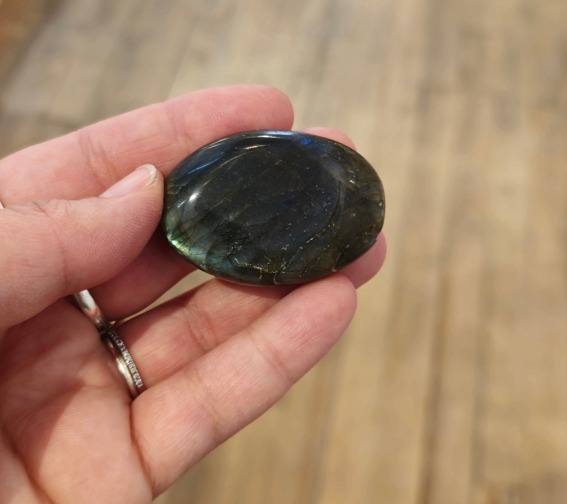 Pierre de paume Labradorite à utiliser en méditation, en décoration, à porter sur soi ou selon votre volonté.