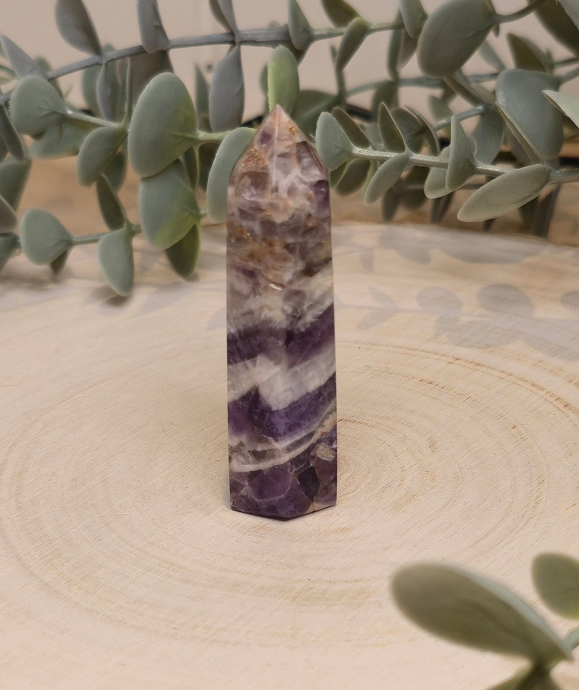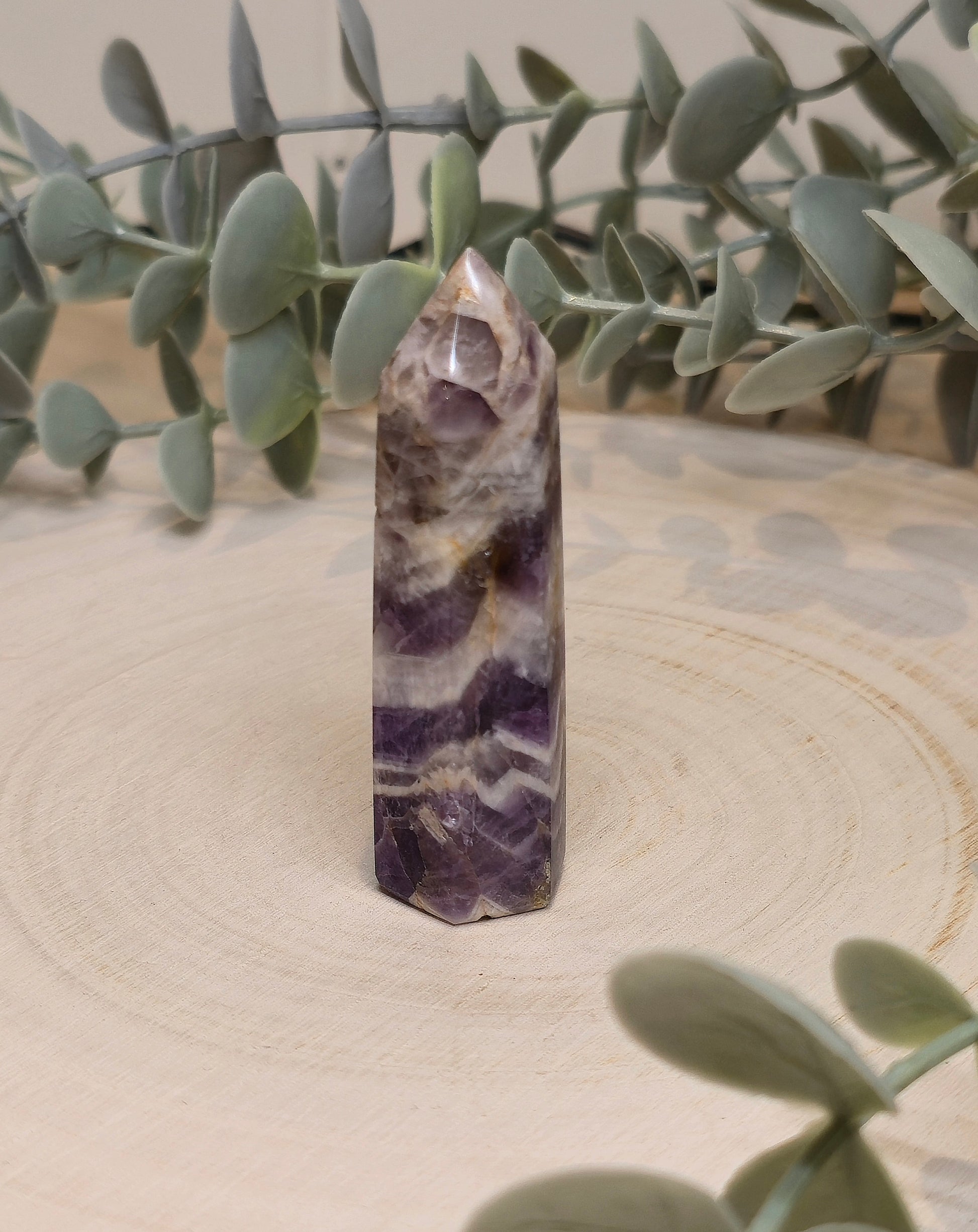 Pointe en Améthyste à utiliser en méditation, en décoration ou selon votre volonté.