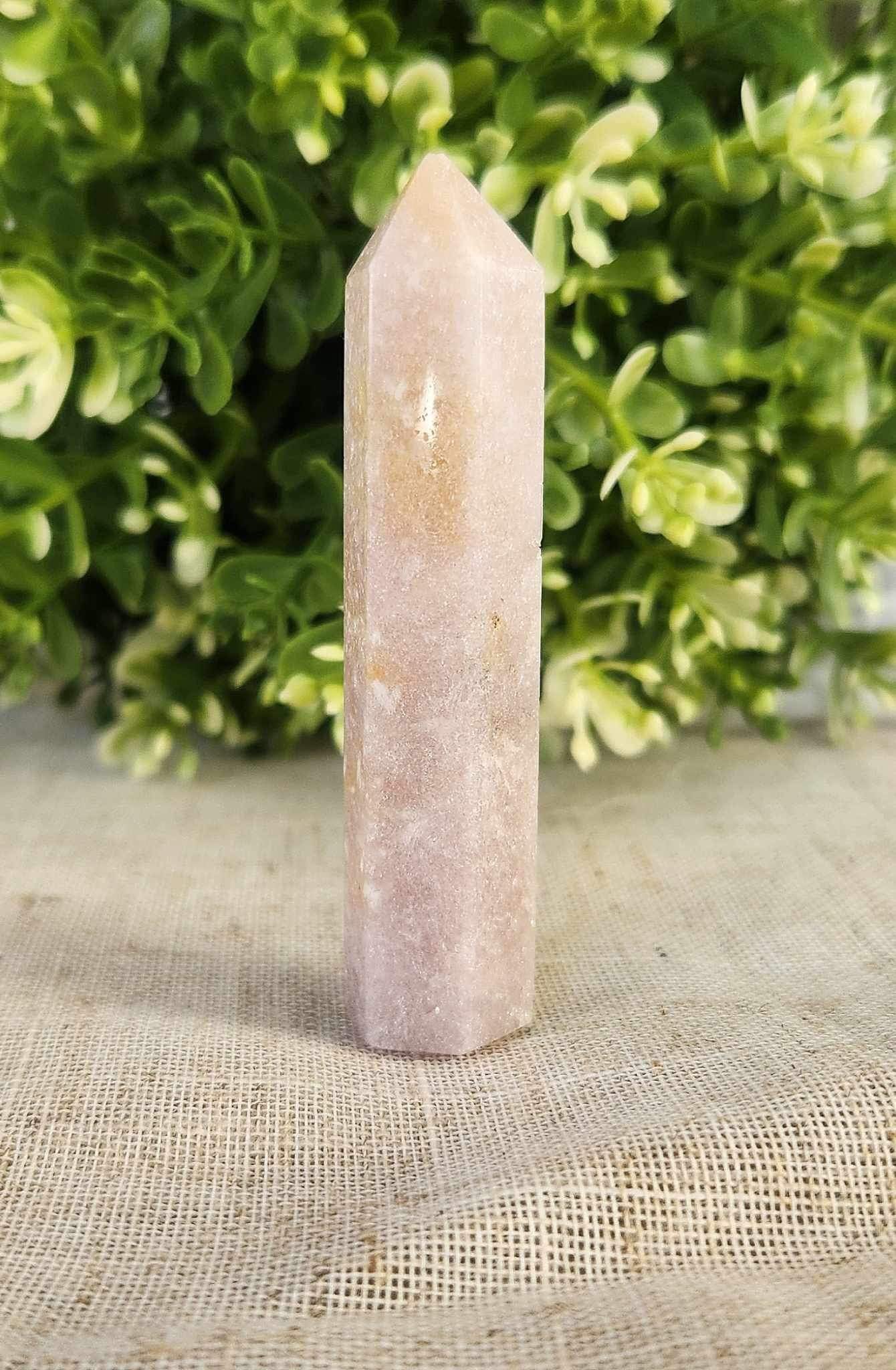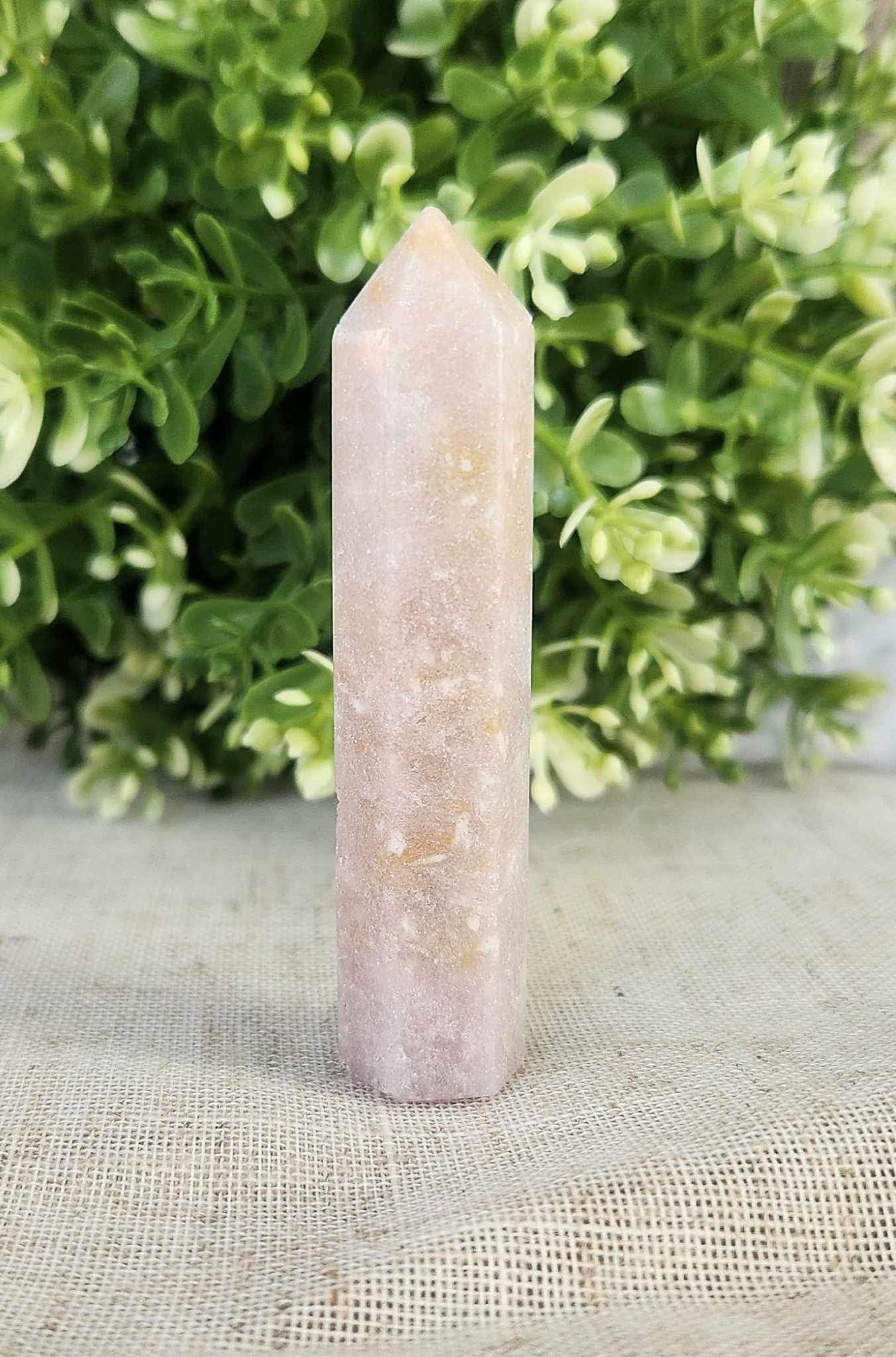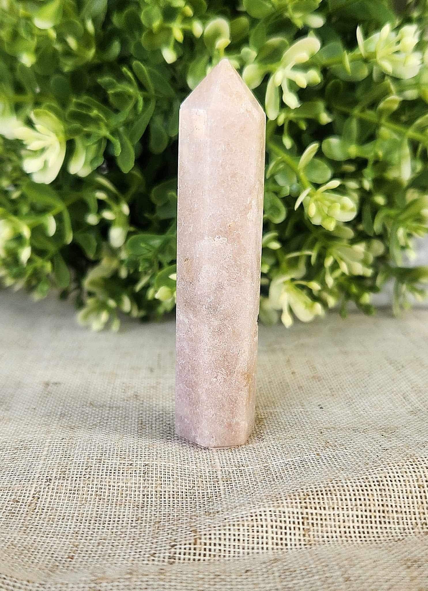Pointe en Améthyste Rose à utiliser en méditation, en décoration ou selon votre volonté.