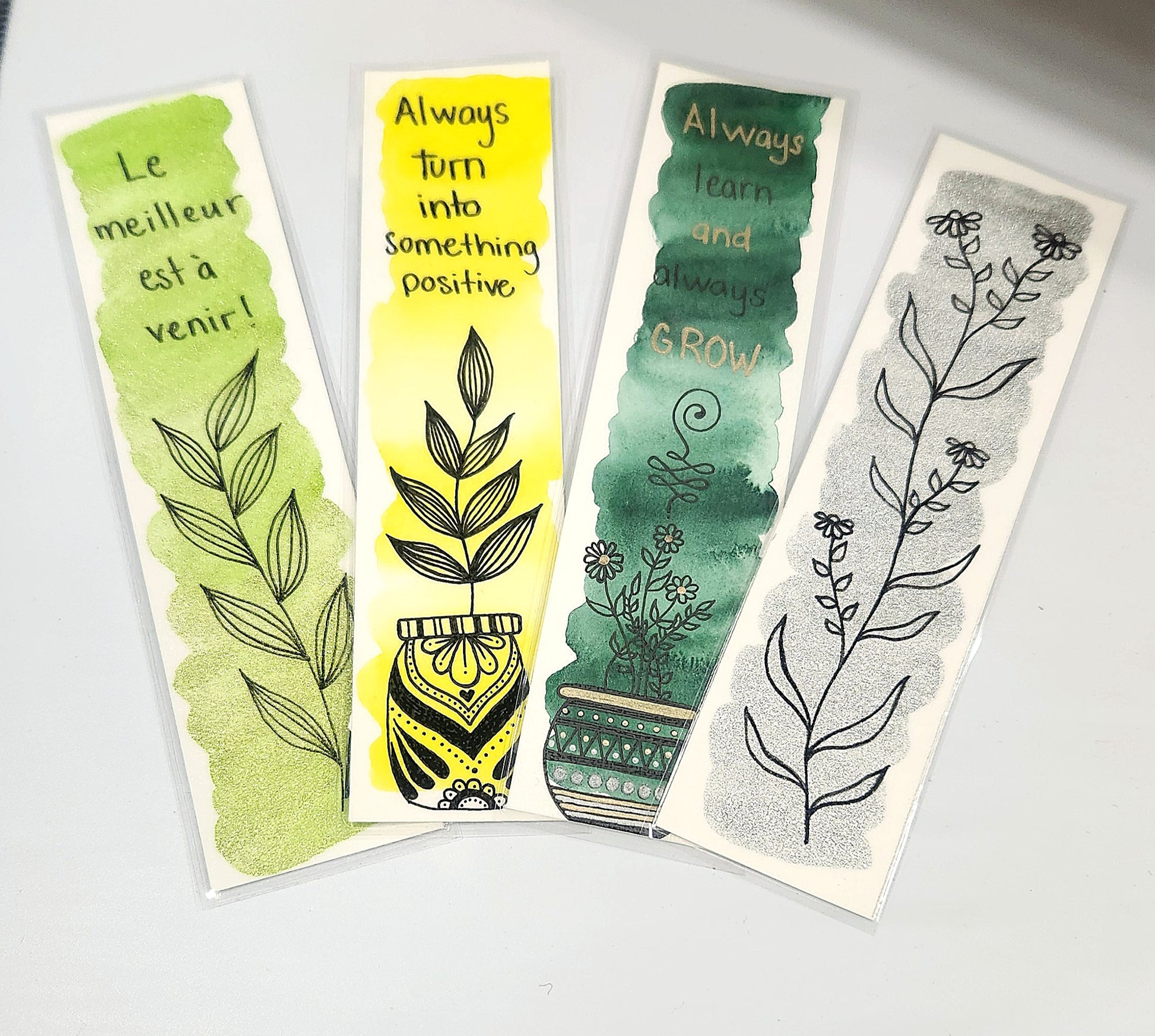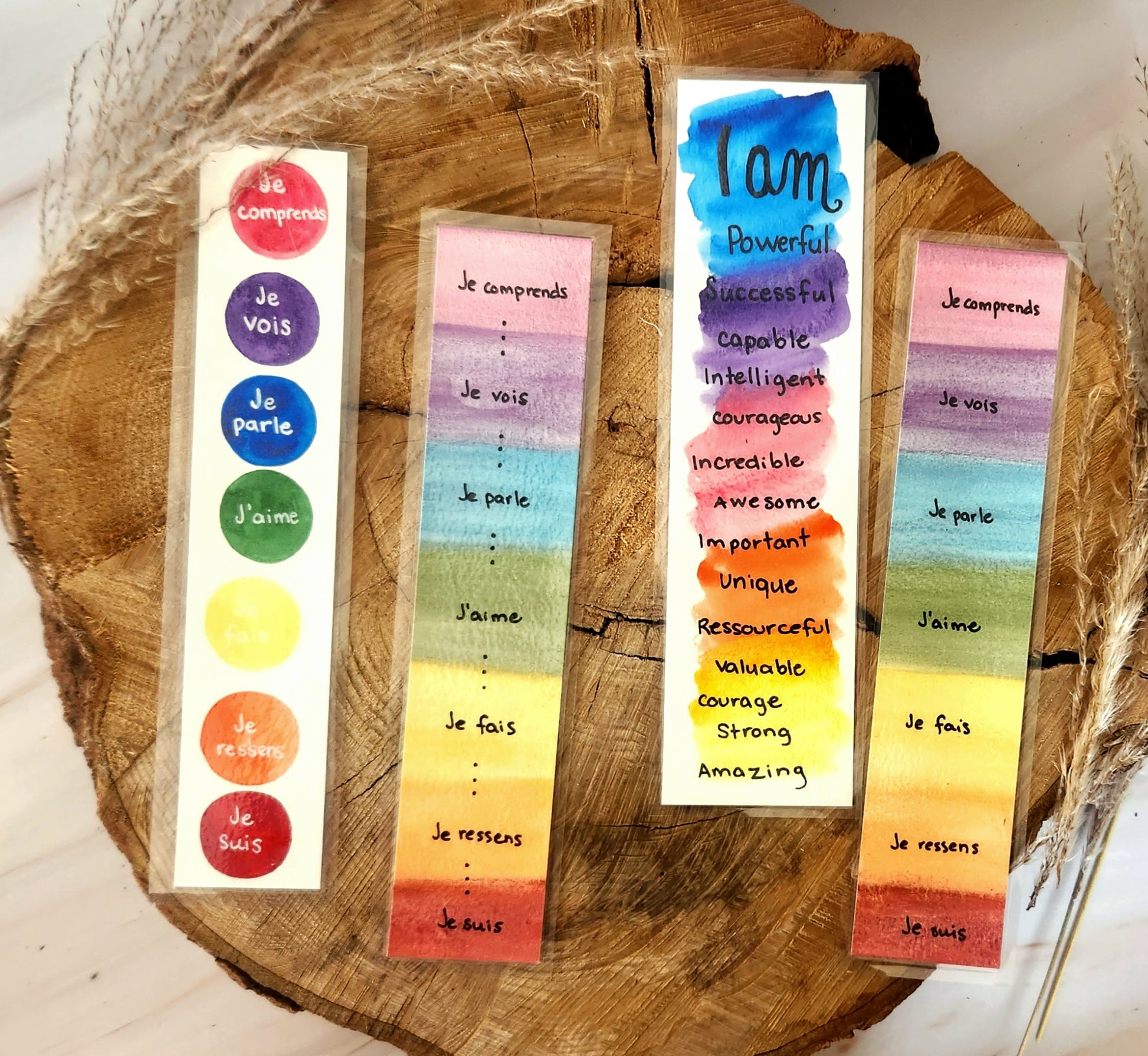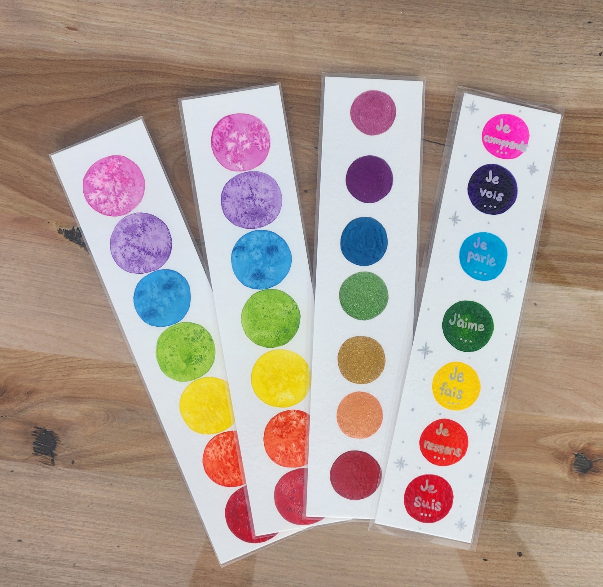 Chaque signet est fait en aquarelle à la main et plastifié afin de vous permettre de l'apporter partout et qu'il reste beau. Un café qui se renverse dessus ? Pas de problème. On essuie et on le remets dans notre livre.